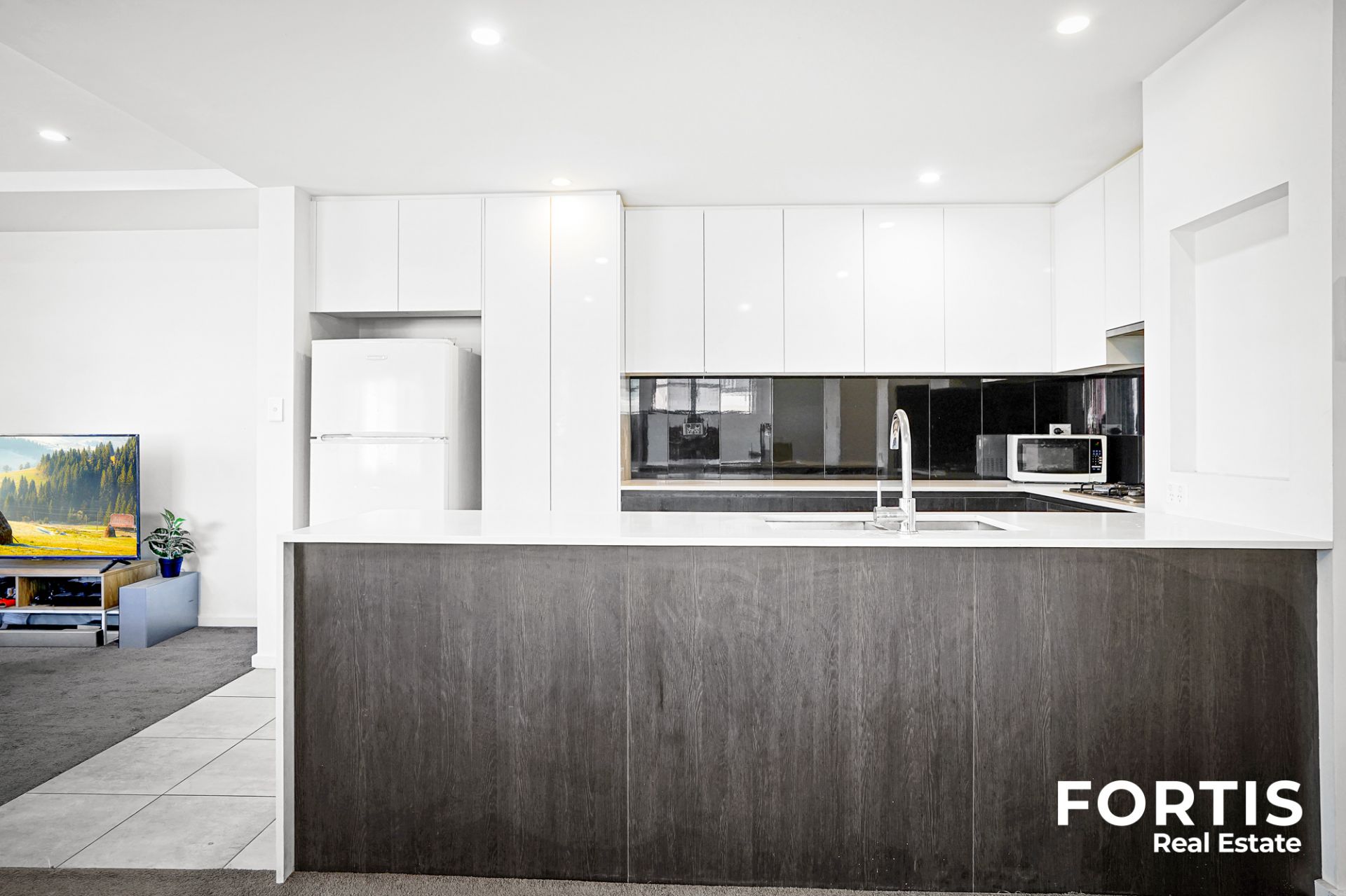 • Open plan kitchen, living, and dining areas that flow to a generous balcony.